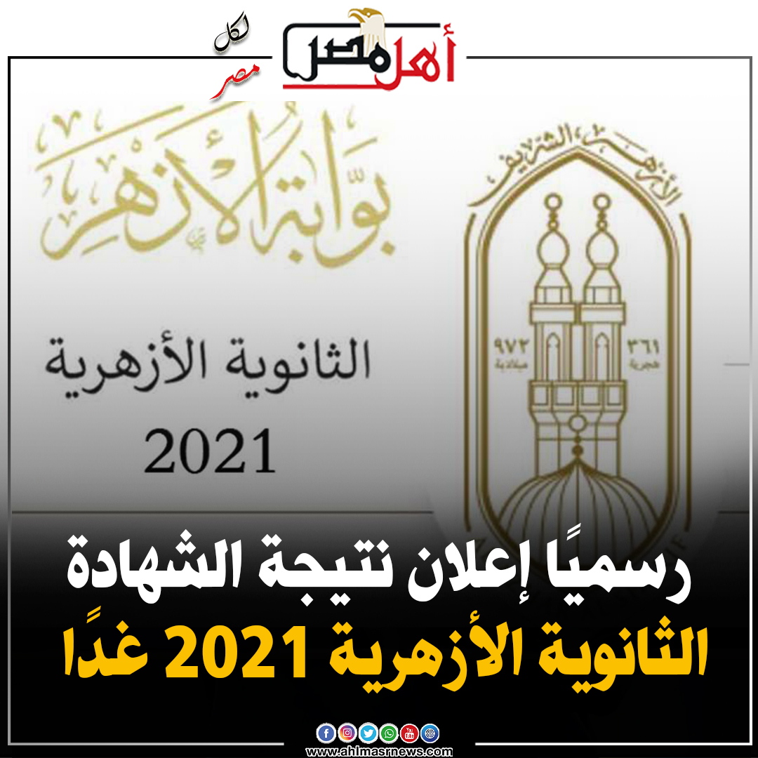 نتيجة الثانوية الأزهرية 2021.أعلنت الأزهر الشريف عن عقد مؤتمر صحفي غدا الأحد 15 أغسطس 2021، للإعلان عن نتيجة الشهادة الثانوية للعام الدراسي 2021/2020م، تمام الساعة الـ 1 ظهرا، والتي سيتم اعتمادها من قبل الدكتور محمد الضويني.